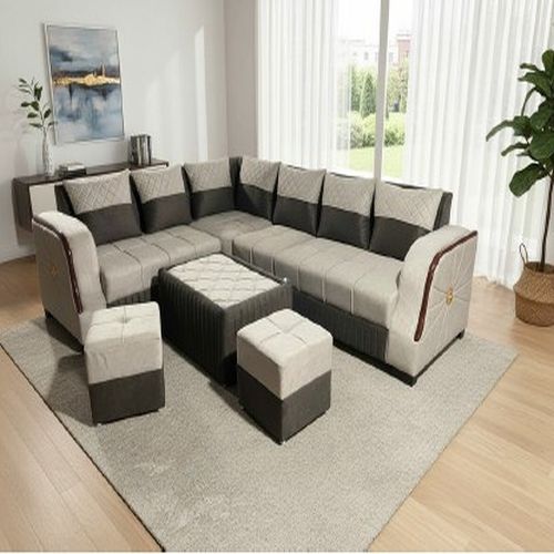 Grey Beige Dual Tone Fabric Corner Sofa Set